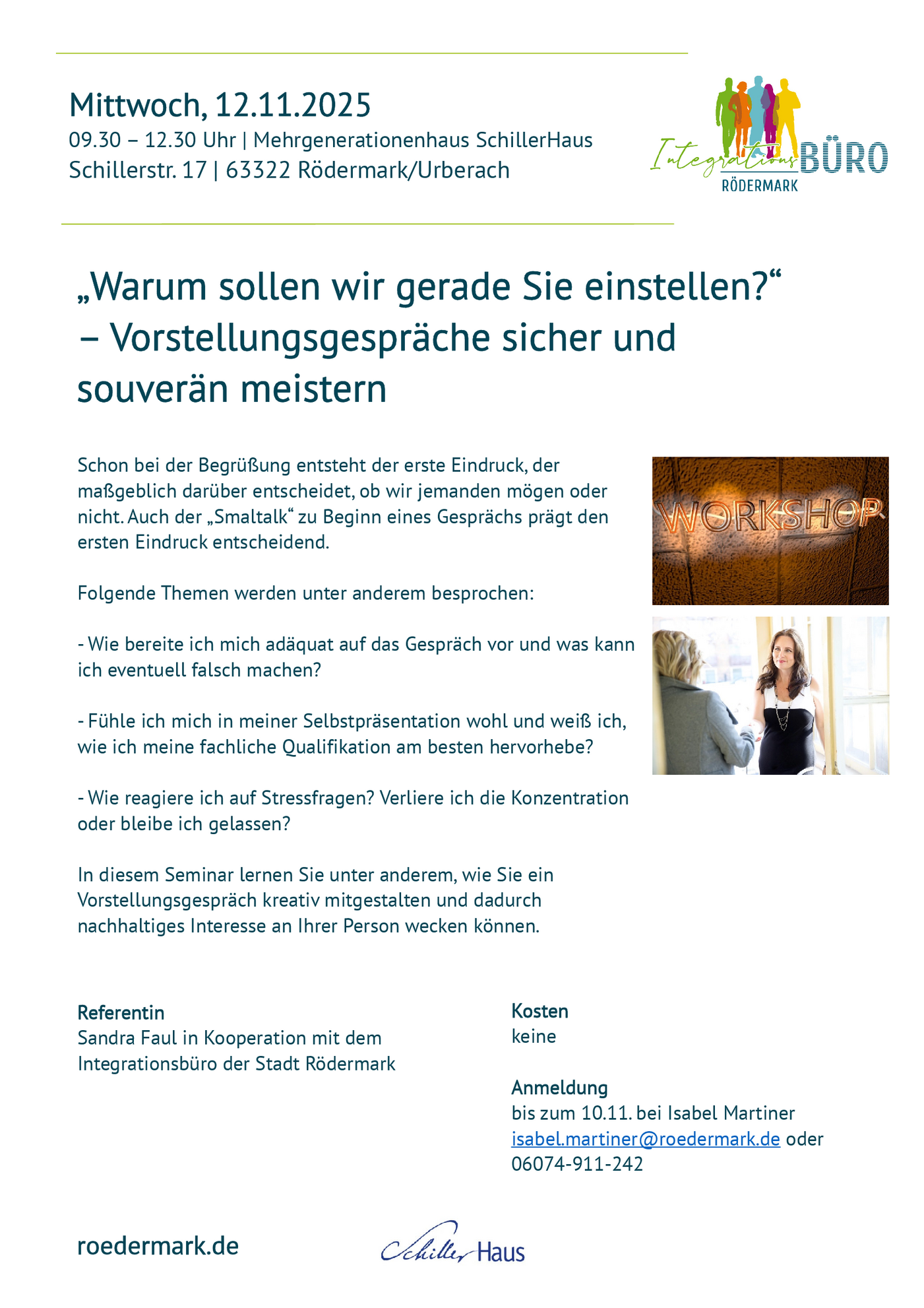 Weiteres Informationsmaterial finden Sie im Frauenbüro (Mehrgenerationenhaus SchillerHaus) wie z.B. Broschüren der Bundesregierung und der Hessischen Landesregierung zu frauenrelevanten Themen, sowie Infos von Rödermarker Frauengruppen, Elterninitiativen und Bildungsträgern.
