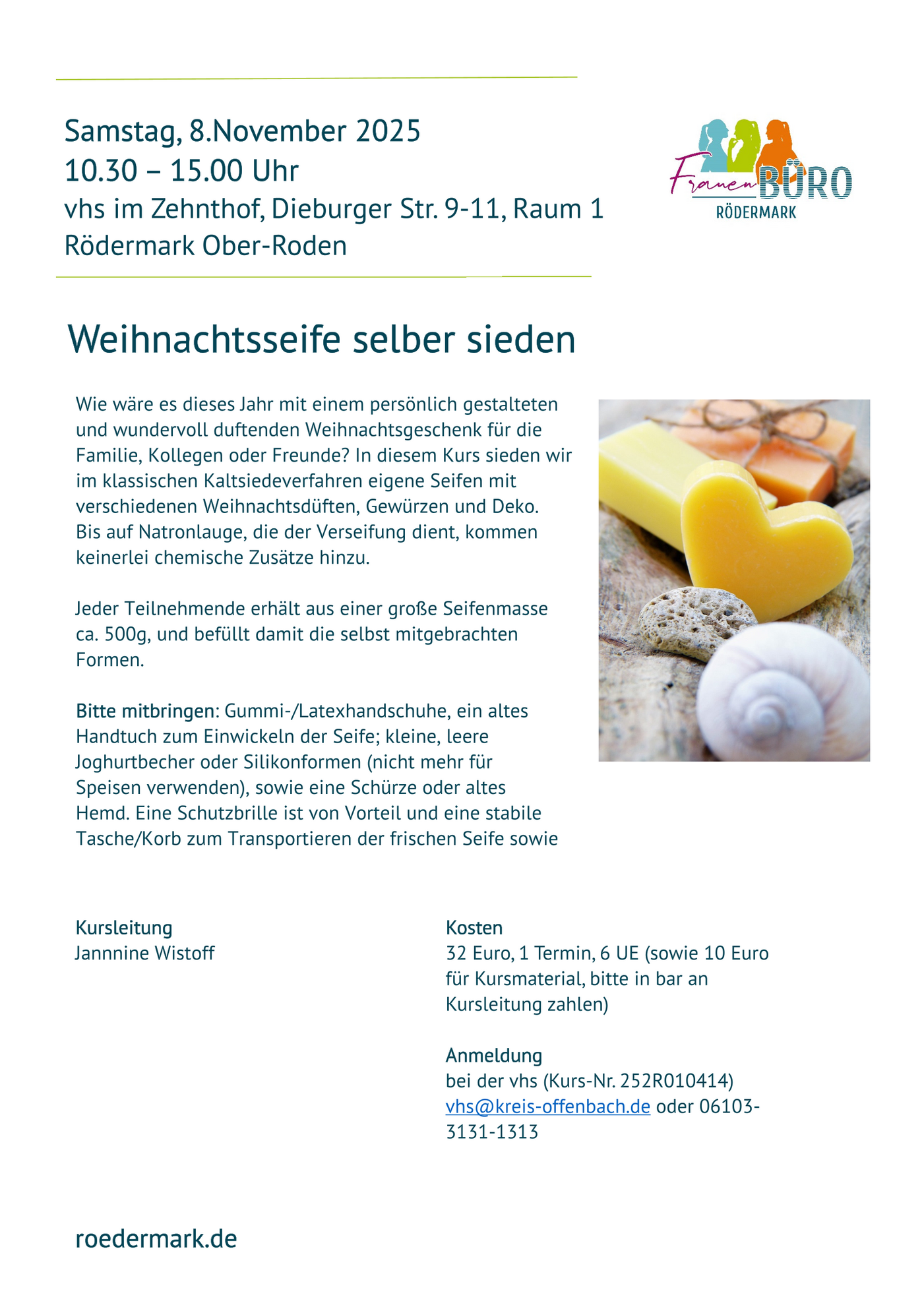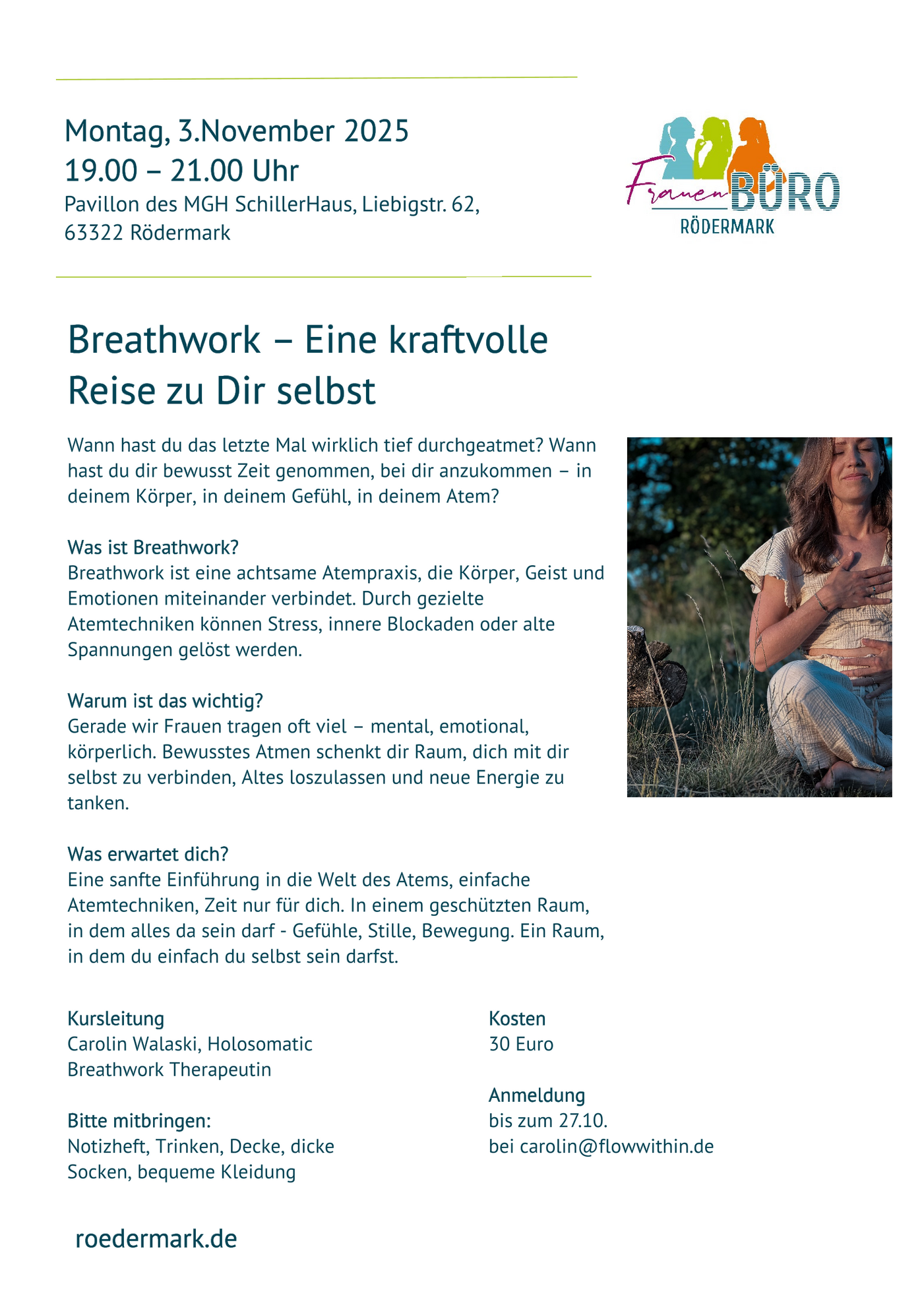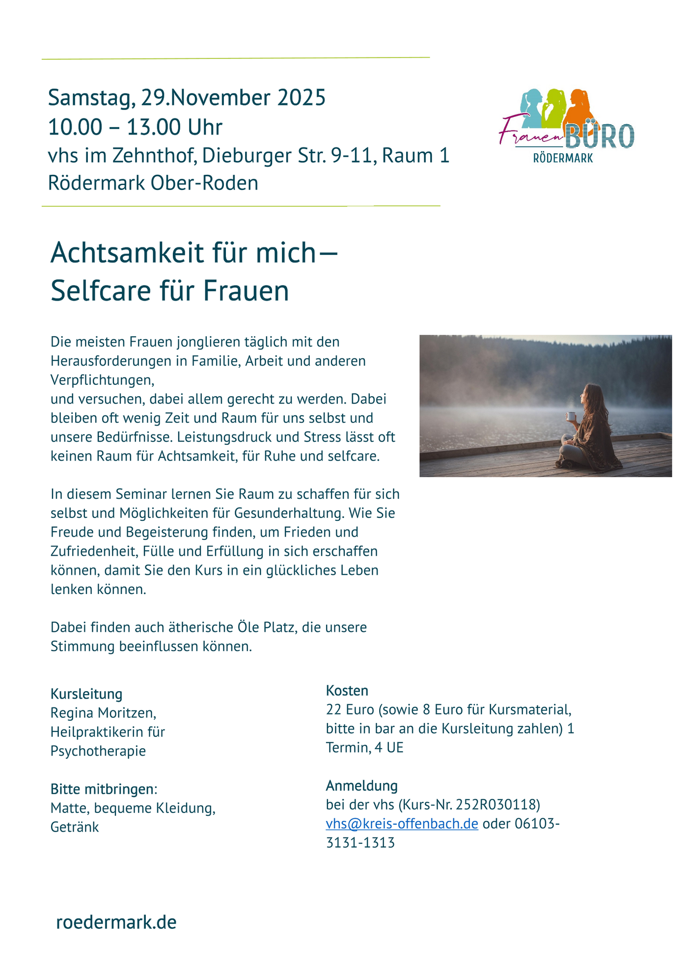 Vorträge, Workshops, Kreativangebote, Informationsveranstaltungen in Präsenz und online, Fitnessangebote – all das bietet das Rödermärker Frauenprogramm für den Zeitraum von August 2025 bis Januar 2026.