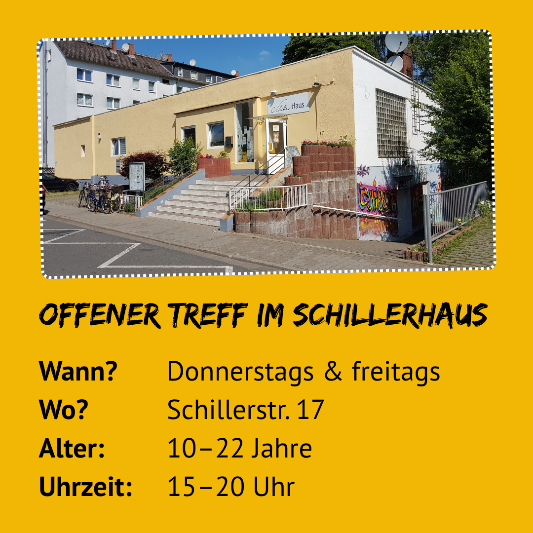 Beim offenen Treff im Jugendzentrum Ober-Roden und im Mehrgenerationenhaus SchillerHaus könnt ihr ohne Anmeldung vorbeikommen, euch mit Freunden treffen oder an unseren Angeboten teilnehmen. Alle Angebote sind kostenfrei. Hier kannst du Playstation, Billard, Tischkicker, Tischtennis und noch vieles mehr spielen. Außerdem Kochen und Backen wir hier regelmäßig.