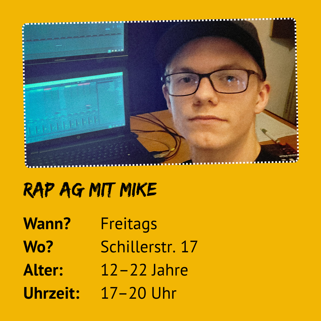 In der Rap AG hast du die Möglichkeit eigene Songs zu schreiben und aufzunehmen. Es ist egal wie gut du bist und wie lange du schon Musik machst, bei uns ist jede:r willkommen! Voraussetzung ist, dass du bereit bist mit anderen Teilnehmerinnen und Teilnehmern gemeinsam Musik zu machen.
