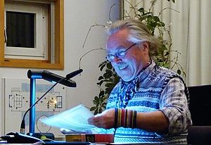 Winno Sahm gestaltete zum Abschluss des Jubiläumsjahres der Stadtbücherei einen vergnüglichen Abend