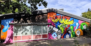 Jugendliche machen die Fassade des Jugendzentrums zum Kunstwerk