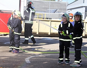 Kinderfeuerwehr Ober-Roden hat das Retten und Löschen auf dem Hof der Nell-Breuning-Schule geübt