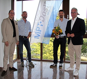 Das international agierende Unternehmen MPT DosING bereichert den Wirtschaftsstandort Rödermark – Bürgermeister gratulierte mit Blumen zum Einzug
