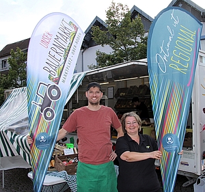 Neue Aufsteller beim Samstagseinkauf – Fleisch, Wurst, Gemüse, Obst, Gutes von der Biene und Wein bilden die Produktpalette