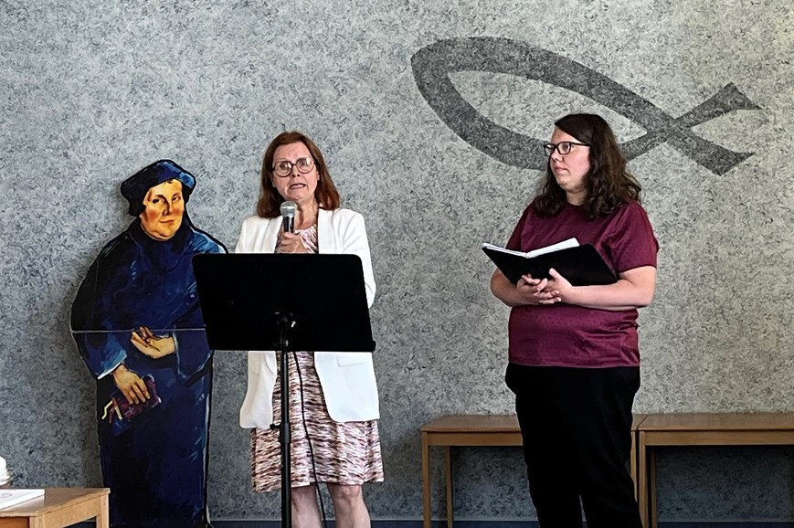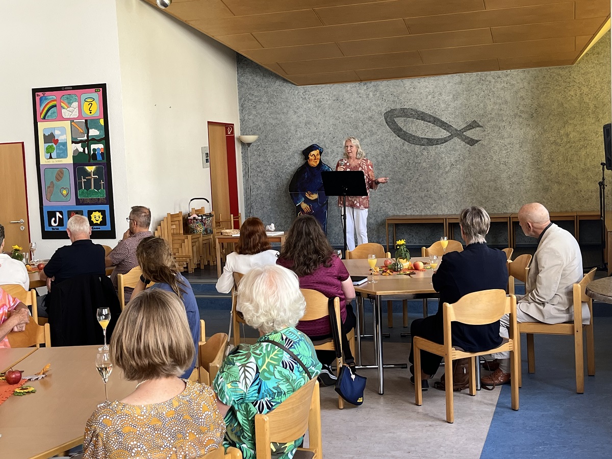 Eine „kleine Gruppe, die Bedarf hatte, und eine kleine Gruppe, die half“ – beides sei im Laufe der Jahre erheblich gewachsen, sagte die Vorsitzende des Kirchenvorstands, Erika Neudert. Was den Brotkorb immer ausgezeichnet habe, sei das große Engagement der Ehrenamtlichen und die breite Unterstützung aus der Bürgerschaft. Ingeborg Strasser, Mitbegründerin und viele Jahre das Gesicht der ökumenischen Initiative, berichtete von den Anfängen. Mit der Umstellung der Sozialhilfe auf das Hartz-IV-System seien viele Menschen in Not geraten. Hilfe war angesagt. „Dass es den Brotkorb nach 20 Jahren immer noch gibt, hätten wir damals nicht gedacht.“