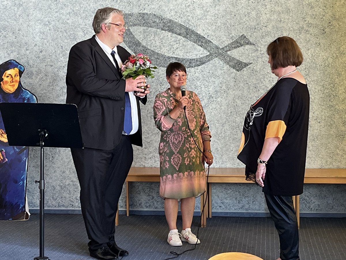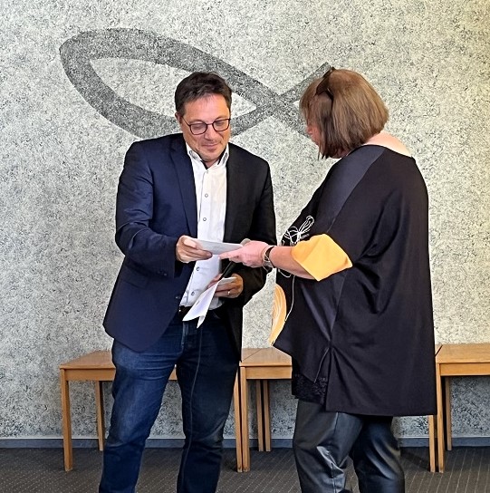 Der Dank aller Gratulanten galt natürlich den rund 35 Frauen und Männern, die für den Brotkorb aktuell im Einsatz sind, die Lebensmittel auf Spendenbasis besorgen, um damit einmal pro Woche die Ausgabe-Aktion zu organisieren. „Wir feiern weniger das Jubiläum dieser Einrichtung, die dringender gebraucht wird denn je, sondern diese Menschen, die sich engagieren“, betonte Pastor Jens Bertram von der Freien evangelischen Gemeinde, der gemeinsam mit der katholischen Gemeindereferentin Tanja Bechtloff den akademischen Teil der Feier moderierte. Im großen Gemeindesaal begrüßte er einige der Initiatoren, Ehemalige, Wegbegleiter und Ehrengäste aus Politik und Stadtgesellschaft.