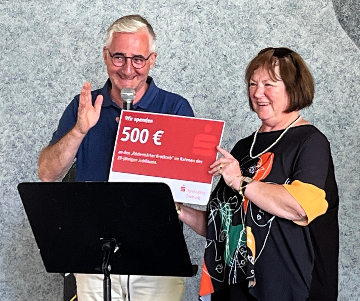 „Ohne den Brotkorb wäre die ganze Stadt ärmer, die Verwaltung wäre aufgeschmissen. Wir könnten das gar nicht stemmen“, sagte Bürgermeister Jörg Rotter. „20 Jahre Ehrenamt für die Gesellschaft, 20 Jahre konkrete Nächstenliebe – das ist wirklich ein starkes Stück Rödermark. Denjenigen, die so tatkräftig anpacken, die sich hier zusammenfinden und Gutes tun, gebührt Respekt und große Anerkennung. Zudem ist das bei uns in Rödermark gelebte Ökumene.“ Aus seinen Verfügungsmitteln der Sparkasse Dieburg stellte der Bürgermeister dem Brotkorb 500 Euro zur Verfügung. Als Major der Prinzlichen Hofgarde der TG-Karnevalisten kündigte er eine Spende von närrisch aufgerundeten 777 Euro aus dem Verkauf der Fastnachts-Pins während der diesjährigen Kampagne an.