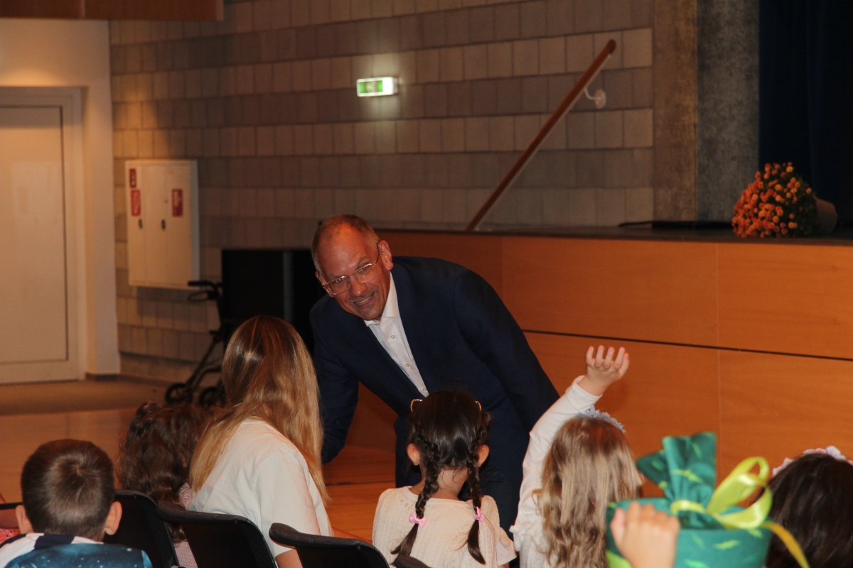 Tags darauf, beim Willkommensfest der Trinkbornschule in der Kulturhalle, wiederholte der Verwaltungschef seinen Appell. Auch dort wurde ihm aufmerksam zugehört von einem großen Auditorium. 178 Mädchen und Jungen füllten in Ober-Roden den Saal und erlebten den feierlichen Moment im Beisein ihrer Familien. Sie verteilen sich, inklusive der Schuldependance im Breidert, auf sieben 1. Klassen sowie eine Vor- und eine Intensiv-Klasse.