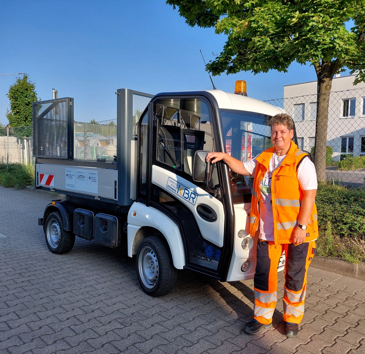 Seit Ende 2022 ist Elke Gröger als fleißige „Anti-Müll-Fee“ für die Kommunalen Betriebe (KBR) unterwegs. Zum Wohle der Allgemeinheit sorgt sie für Sauberkeit in Rödermark. Ob Kippen, Verpackungen, Dosen oder Flaschen: Nichts entgeht dem aufmerksamen Auge und dem beherzten Zugreifen per Hand oder Zange, wenn die Frau mit der markanten Dienstkleidung in Orange mit ihrem Lastenfahrrad oder einem Elektro-Kleintransporter zu den Touren durch die Stadtteile ausrückt. Viel Lob bekommt Gröger von Passanten tagtäglich zu hören: Für ihre freundliche Art, ihr gewissenhaftes Arbeiten und den Effekt eines – zumindest zeitweilig – gepflegteren Stadtbildes, das nach den Einsätzen zu bestaunen ist.
