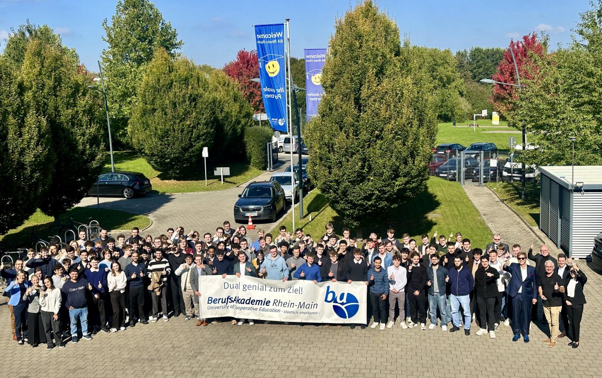 Der große Zuspruch sei Beleg für den erstklassigen Ruf der Bildungseinrichtung, die gute berufliche Karrierechancen nach Abschluss der jeweiligen Studiengänge garantiere, betonte der Bürgermeister beim traditionellen Viele-Köpfe-Foto auf dem Campus. Rotter war sich mit Albrecht einig: Gute, hoch qualifizierte Fachkräfte zu finden – das sei nach wie vor ein brandaktuelles Thema, gerade im Hinblick auf das breit gefächerte Wirtschaftsleben im Rhein-Main-Gebiet. Die BA leiste einen wichtigen Beitrag, wenn es darum gehe, diese gesellschaftliche Herausforderung anzupacken.