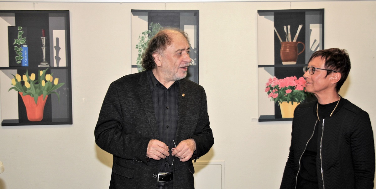 Brigitte Zips zeigt ausschließlich Bilder, die in den letzten fünf Jahren entstanden sind. Man findet attraktive Stadtansichten – diesmal von Frankfurt und Busan –, Landschaften, Stillleben und gemalte Skulpturen, aber auch abstrakte Bilder. Neben der „Qi-Gong-Reihe“ – die einander ähnlichen, aber dann doch wieder grundlegend verschiedenen Werke ziehen den Betrachter förmlich in sich hinein – ist eine neue Reihe in schwarz-weiß entstanden. Die Werke sind mit Acrylfarbe gearbeitet: mal mit dem feinen Pinsel realistisch gemalt, mal abstrakt gespachtelt oder in Mischformen.