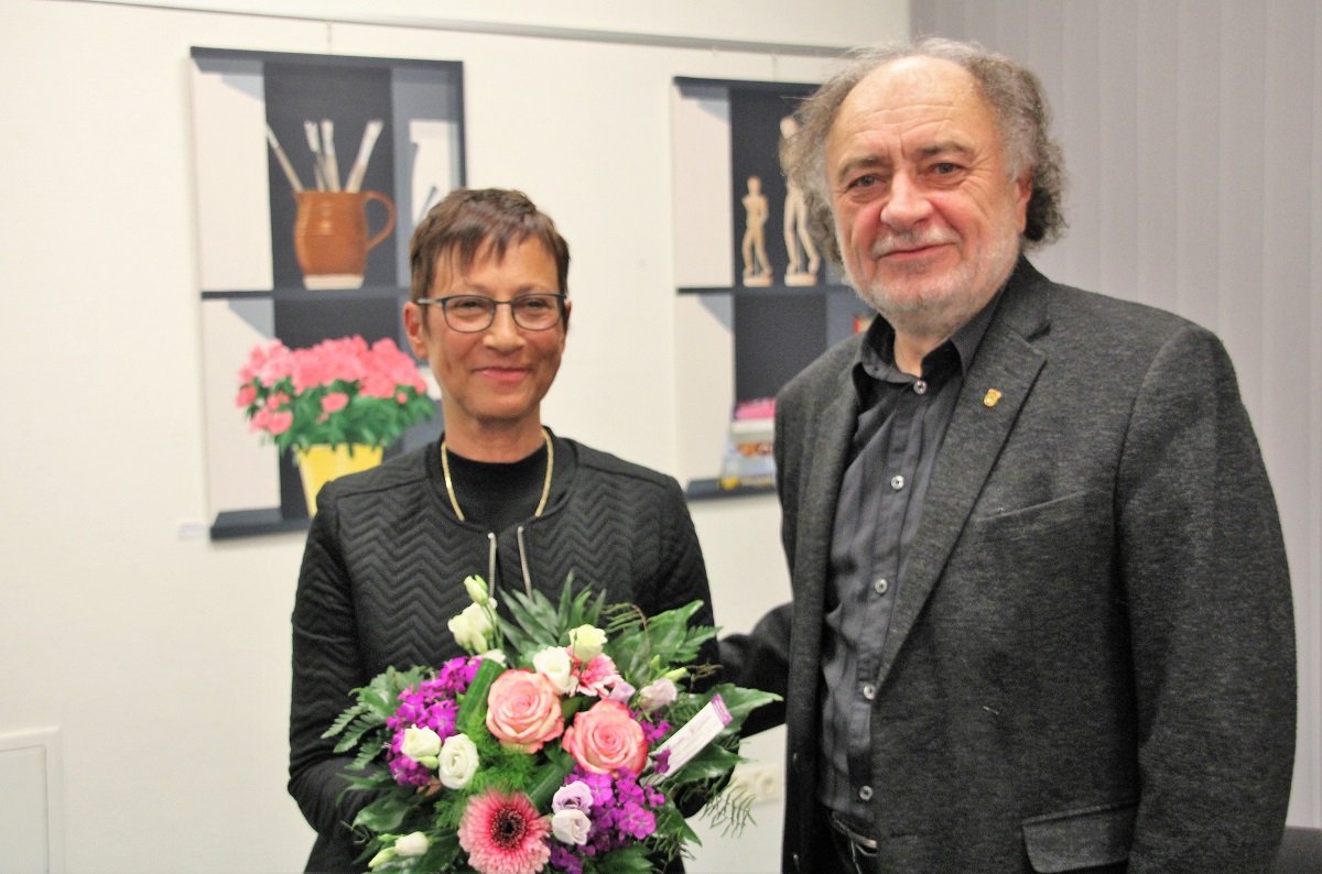 Für Bürgermeister Roland Kern war es ein Déjà-vu der besonders angenehmen Art: Seine erste Vernissage als Rathaus-Chef galt Brigitte Zips, die damals, im Jahr 2006, ebenfalls ihre Premiere im Bücherturm feierte. Zips‘ Ausstellung Nummer vier, die der Bürgermeister am Freitag (2.) eröffnete, wird eine der letzten seiner Amtszeit sein. Wie vor zwölf Jahren, als er ein Bild der Rödermärker Künstlerin erworben hatte, das noch heute in seinem Büro hängt, zeigte sich Kern begeistert von der Kunst der Malerin, die mit Acrylfarben spielt, mit den unterschiedlichsten Techniken vielfältige künstlerische Aussagen trifft.