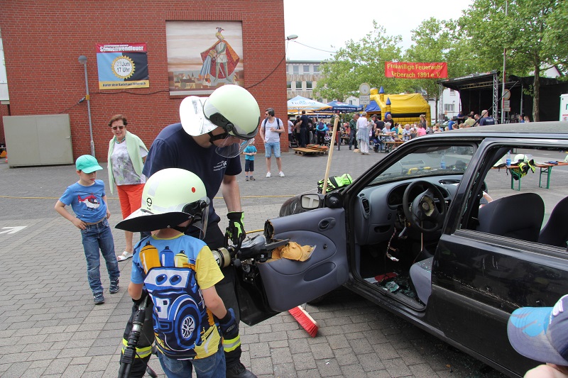 Sie hatten an ihrem „Tag der Feuerwehr“ auch schon Wetterpech gehabt, die Urberacher Floriansjünger. Doch am vergangenen Sonntag, da strahlten die Verantwortlichen um Dieter Rumpf mit der Sonne um die Wette, die ihnen – trotz eher mauer Prognosen – ein volles Haus und einen vollen Festplatz bescherte. Dass das Schaulaufen an Muttertag für die vielen Besucher ein reines Vergnügen war, lag natürlich nicht nur am Wetter, sondern sicherlich auch am leckeren Essen mit Spargel-Schwerpunkt und den gut gekühlten Getränken. Außerdem wurde den Gästen ein abwechslungsreiches Programm mit viel Spaß für die ganze Familie geboten. Die Kleinen konnten sich in der Hüpfburg austoben, mit der Wasserspritze auf ein kleines Übungshaus zielen, beim Zerlegen eines Autowracks mit der Rettungsschere Hand anlegen oder sich hinter das Lenkrad eines großen Feuerwehrautos setzen. Die Jugendfeuerwehr informierte über ihre Arbeit und stieß auf einiges Interesse. Am Nachmittag zeigten die Nachwuchsbrandschützer bei einer Schauübung, was sie schon draufhaben. Schon am Party-Vorabend war die Schar der Gäste groß, als die Feierbiester bei einer Fete mit der Coverband „RoXonE“ auf ihre Kosten kamen.
