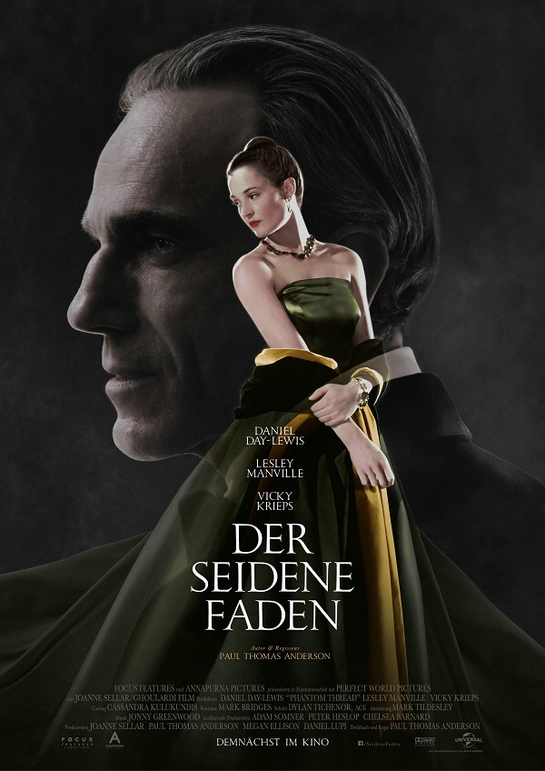 Paul Thomas Andersons achte Regiearbeit erzählt die Geschichte eines Künstlers auf seiner kreativen Reise. Eine Geschichte vom Streben nach Schönheit und Perfektion und von den Frauen, die dafür sorgen, dass seine Welt sich immer weiter dreht. Der dreifache Oscar-Gewinner Daniel Day-Lewis hat erst kürzlich angekündigt, dass „Der seidene Faden“ der letzte Film seiner Karriere sein wird. Eine kleine Sensation: die junge, in Berlin lebende Luxemburgerin Vicky Krieps (Die Vermessung der Welt, Colonia Dignidad).