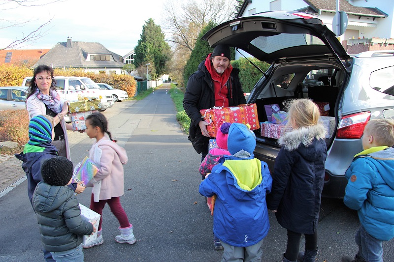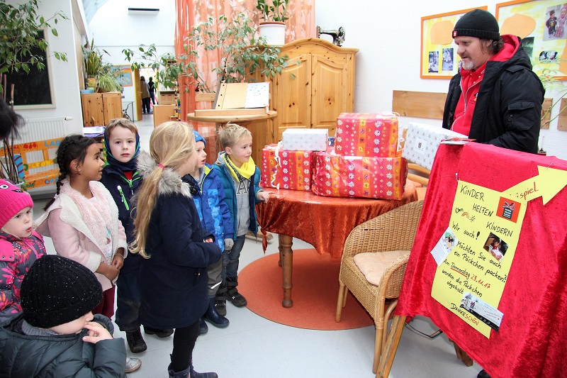 Initiiert hatte die Kita-Aktion ein Vater: Andrew Fordyce ist Mitglied des Round Table, einem so genannten Service Club wie die Lions oder die Rotarier. Vom Kita-Team wurde sie gerne aufgegriffen, und das nicht zum ersten Mal. „Das lief ganz problemlos: Wir haben Handzettel ausgelegt und die Eltern angesprochen. Mit der Resonanz sind wir zufrieden“, sagte die stellvertretende Kita-Leiterin Kerstin Lorenz, als Fordyce am vergangenen Donnerstag die Päckchen abholte. Stolz trugen die Kinder ihre Geschenke zu seinem Auto.