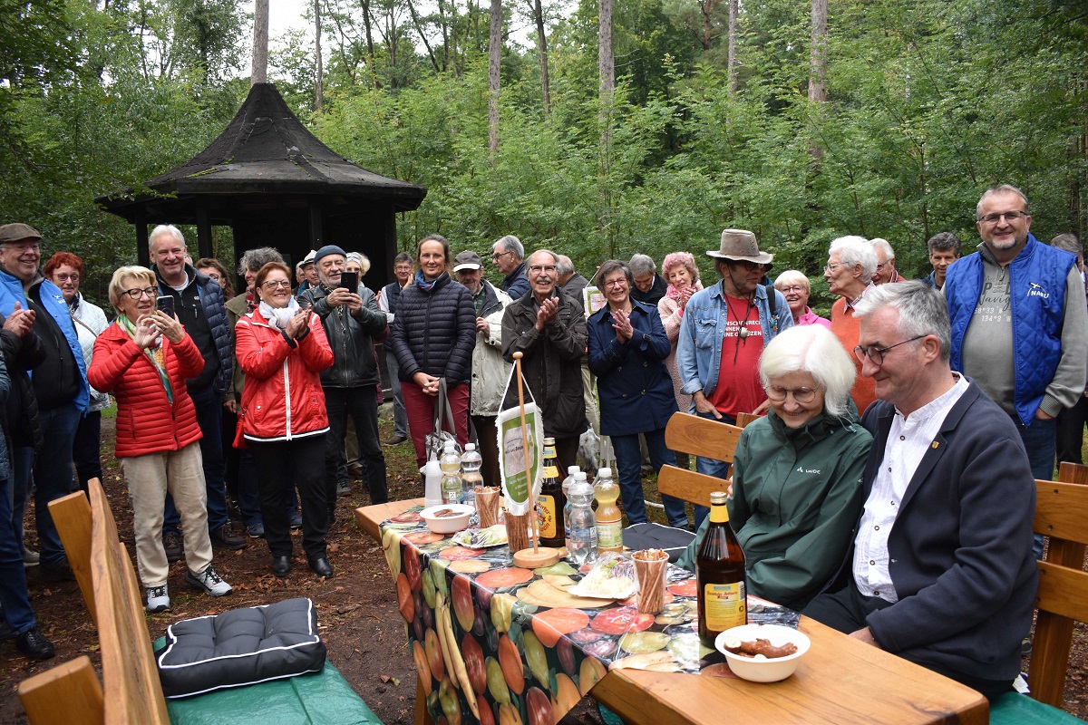 Karlheinz und Heinz Weber – sie waren in den ersten Jahren ab 2011 „ein unschlagbares Doppel, der eine der dynamische Taktgeber, der andere der besonnene Koordinator im Hintergrund“, wie es Greta Diederichs in ihren Erinnerungsworten formulierte. Petra Wilde ließ es in ihren Gedanken nicht beim jetzigen Zustand bewenden, sondern formulierte auch schon die geplanten Veränderungen, die mit Verjüngung einhergehen werde. Dr. Rüdiger Werner vom Nabu Rödermark betonte ebenso wie Quartiersvertreter Frieder Kühne, wie sehr sich Karlheinz Weber zunehmend in den letzten Jahren der Natur gewidmet und ihre sichere Zukunft mit erarbeitet hat.