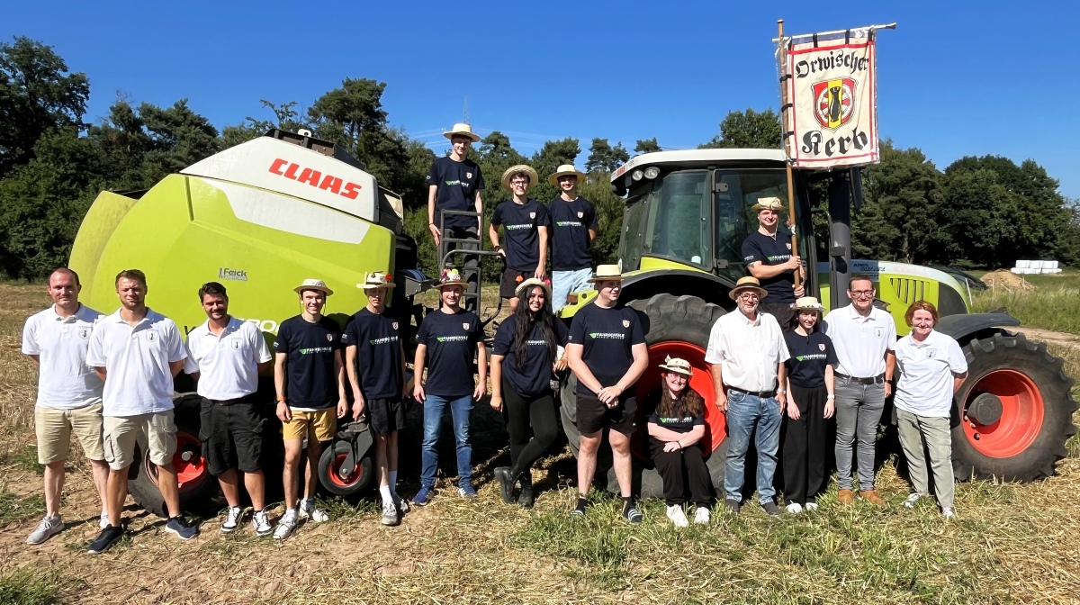19 Kerbborsche mit Kerbvadder Max Mertink an der Spitze und 6 Kerbmeedschen verkörpern während dieses verlängerten Wochenendes das althergebrachte Brauchtum, sei es bei der Aufstellung des Kerbbaums, beim Stecken der Kerbsträuße oder beim Kerbspruch des Kerbvadders. Ihre Namen: Max Ahrens, Louis Bauer, Leandro Bernhardt, Colin Brandt, Lukas Csontos, Niklas Ewert, Philipp Fink, Timon Föckel, Paul Fordyce, Dennis Fuchs, Torben Götz, Victor Gruhl, Philip Mertink, Max Mertink, Luca Müller, Noah Müller, Ben Rickert, Niklas Schnur, Leon Sulzmann, Marilena Bauer, Annika Bittner, Kim Ehrmann, Hanna Löhr, Emma Schlapp und Akira Wolf.