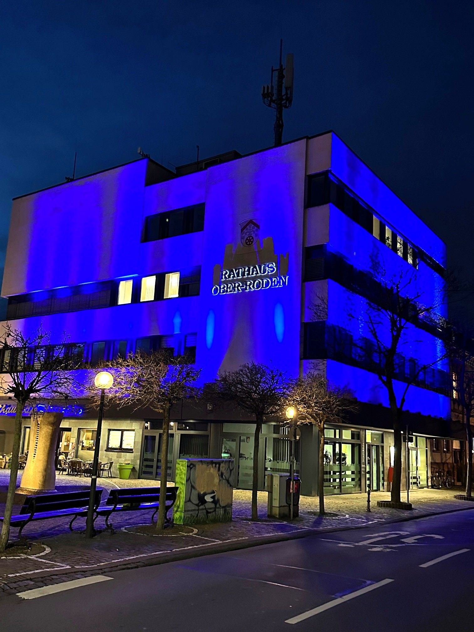 Ein Farbakzent der besonderen Art ist in dieser Woche am Donnerstagabend am Rathaus Ober-Roden gesetzt worden. Die Fassade der Verwaltungszentrale erstrahlte in sattem Blau, animierte Passanten zum Hinschauen und Nachdenken. Blau? Und warum dieses Signal ausgerechnet am 20. November?