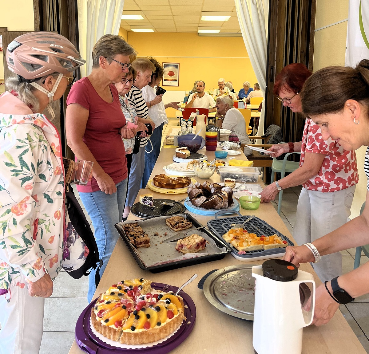 Den Anfang machte der Martinskaffee im November, im Februar war dann Zeit für das Wintercafé, nun galt es, den Sommer einzufangen und den Bürgertreff in das entsprechende Jahreszeitencafé zu verwandeln. Das gelang den fleißigen Mitgliedern der Quartiersgruppe Waldacker am vergangenen Sonntag spielend. Besser: backend. Nicht weniger als 14 köstliche Kuchen und Torten waren in den heimischen Bäckereien entstanden, Kaffee wurde frisch gekocht, Waffeln wurden à la minute produziert, Obstsalat gab es, auch kalte Getränke wurden gereicht – was konnte man bei Sonnenwetter am meteorologisch letzten Sommersonntag mehr erwarten?