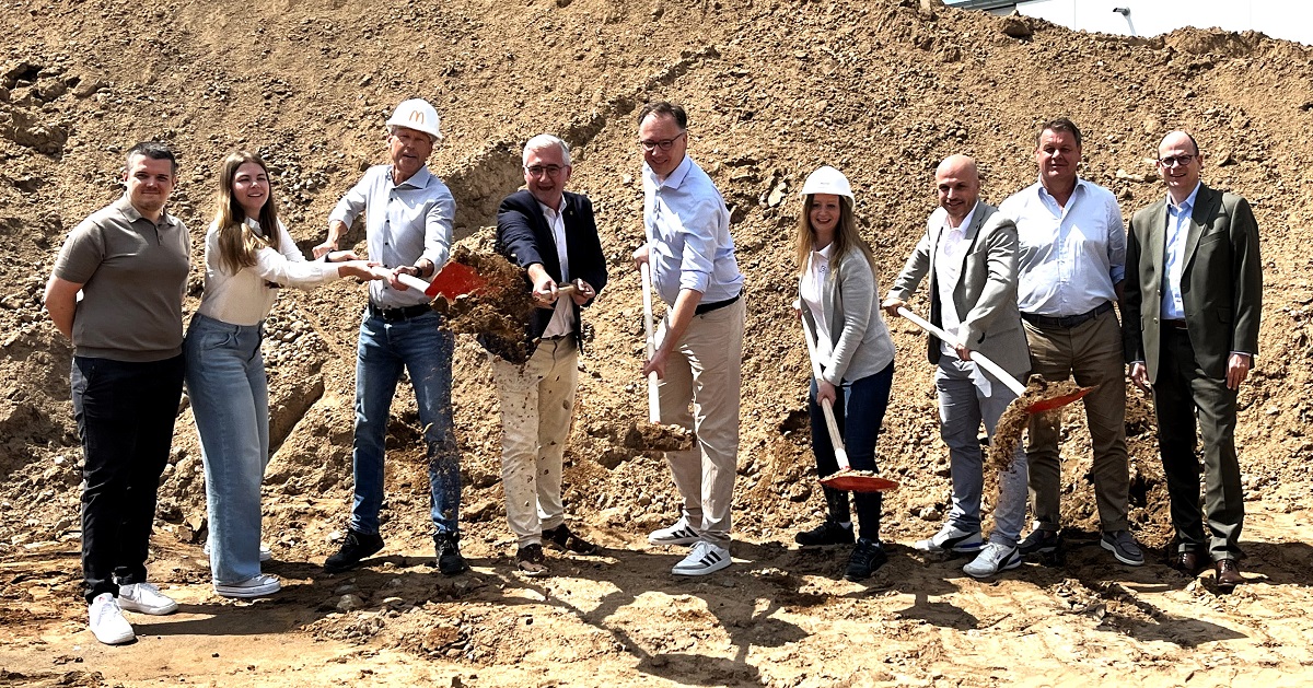 Ein besseres Besuchserlebnis, gesteigerter Komfort für die Mitarbeitenden, Pilotstandort für ein neues Innenraum-Konzept und einen modifizierten Gebäudetyp, Fotovoltaik auf dem Dach, Kühlen, Heizen und Kochen ohne fossile Brennstoffe, Nachhaltigkeit innen und außen – Ober-Roden bekommt noch in diesem Jahr das modernste McDonald’s-Restaurant in Deutschland. Die Eröffnung auf dem von ALDI gepachteten Areal zwischen dem Discounter und dem Getränkemarkt ist für Anfang Oktober geplant. Mit dem offiziellen Spatenstich durfte am Montag dieser Woche ein Meilenstein auf dem Weg dorthin gefeiert werden. Bei der Zeremonie legte auch Bürgermeister Jörg Rotter Hand an den Spaten. Zusammen mit seinem Wirtschaftsförderer Till Andrießen wünschte er Franchisenehmer Hagen-Holger Apel, den Vertretern des Fast-Food-Konzerns, Mitarbeitern der Projektbetreuung sowie der Bau- und der Planungsfirmen alles Gute für den Fortgang der Arbeiten.
