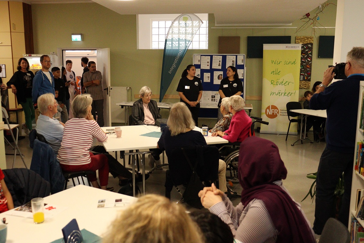„Gibt es die Mitarbeiterin im JUZ noch?“ „Welche Angebote für mein Kind haben Sie“? „Was macht eigentlich der Ausländerbeirat“? Bei Kaffee und mitgebrachten Kuchen kam man schnell ins Gespräch, lernte die Angebote des SchillerHauses kennen, probierte sich bei den sportlichen Angeboten aus und nutzte das Wiedersehen auch, um über frühere Zeiten zu plaudern.