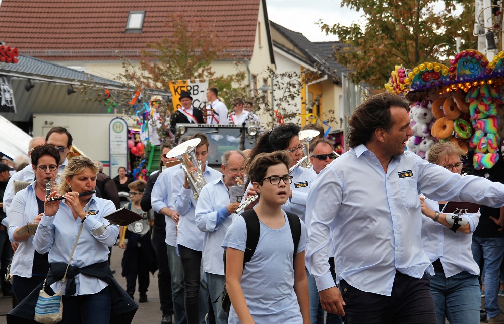 Am Montag traf man sich traditionell zum Frühschoppen in den Zelten oder im Dinjerhof und bei Sonnenschein am Mittag gerne auch auf dem Marktplatz. An den Tischen wurde natürlich über das Wetter gesprochen und über die Lautstärkeverordnung des Kreises. Letzteres wurde angesichts des Ersteren (diesmal) nicht zum Problem. Kulturamtsleiter Gregor Wade registrierte nur einen einzigen Anruf auf seinem eigens eingerichteten Beschwerdetelefon: „Und das am Samstag um 20.30 Uhr, als ein Anwohner klagte, es sei rund um den Kerbplatz zu leise; das sei keine richtige Kerb.“