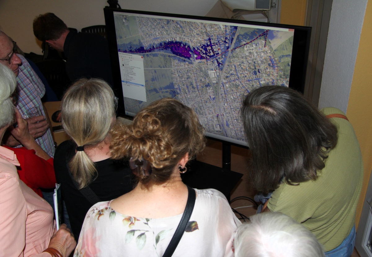 Welche Wasserstände hätten Starkregen-Szenarien, die mit ihrer Wucht nur alle 30 oder gar 100 Jahre zu erwarten sind, in den einzelnen Rödermark-Stadtteilen zur Folge? Mit dieser zentralen Fragestellung haben sich die Sachverständigen aus Südhessen intensiv beschäftigt. Umweltingenieur Marcel Mailänder gab einen Überblick über die Ergebnisse und präsentierte schlussendlich große Karten, auf denen alle Gäste nachschauen konnten: Wo ist mein Zuhause? Wie stark wäre das Gebäude von Überschwemmungen betroffen? Kurzum: In welchem Risikobereich liegt das jeweilige Wohngebiet?