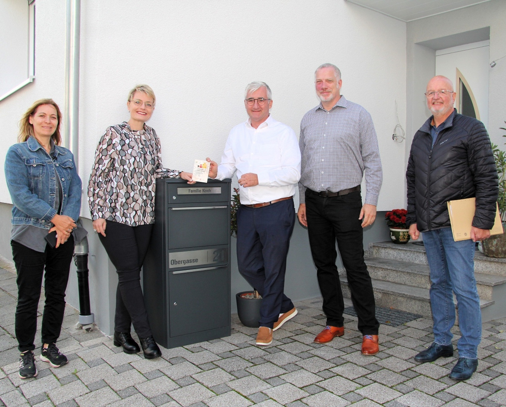Auch Tanja Kloft, die zuständige Ansprechpartnerin der kommunalen Bauverwaltung, und Michael Meyer vom Darmstädter Architekturbüro Rittmannsperger, das die Stadt Rödermark bei der Sichtung und Begleitung entsprechender Förderanträge unterstützt, waren mit von der Partie. Der Fototermin wurde genutzt, um einmal mehr an die Vorgaben des Anreizprogramms zu erinnern.