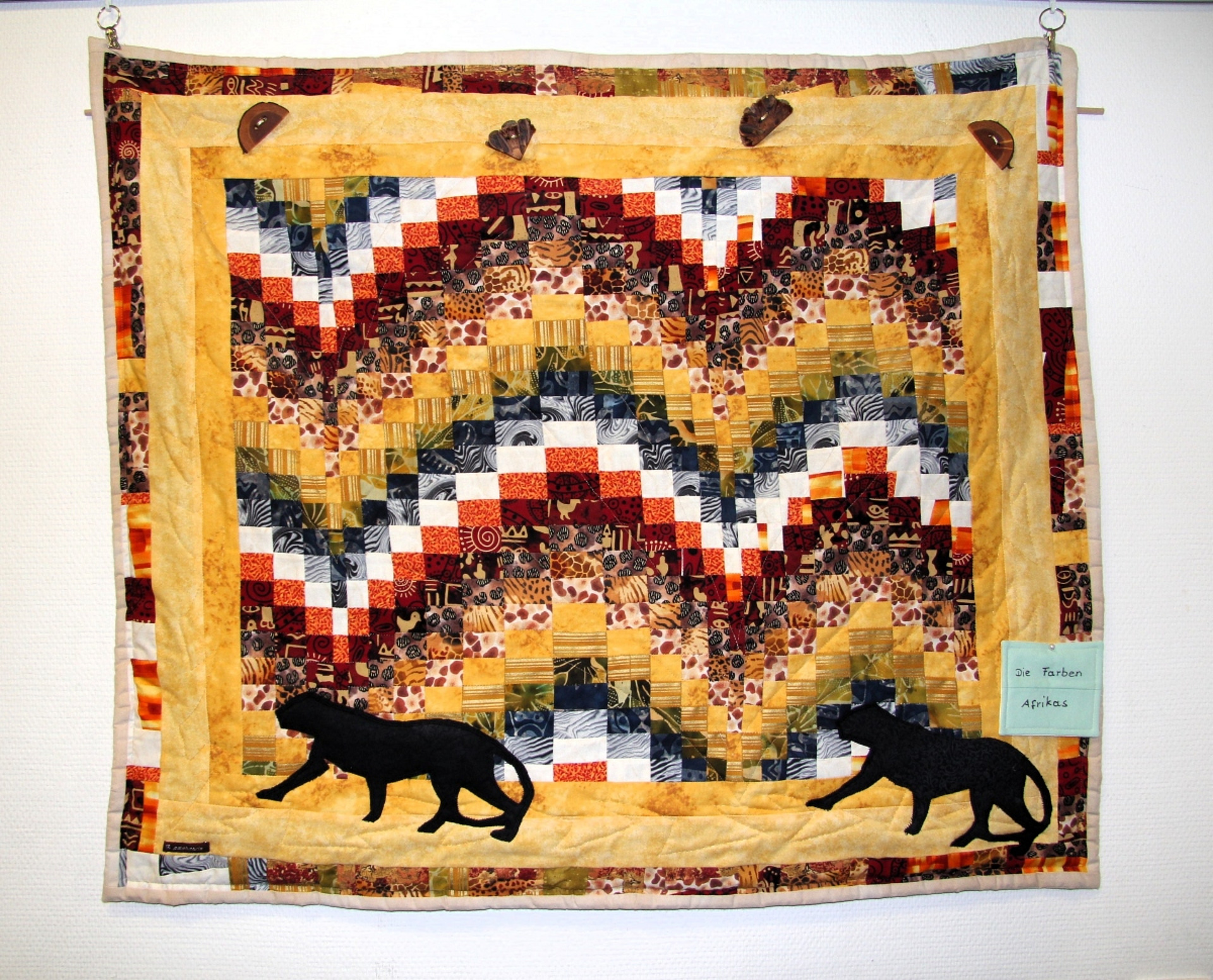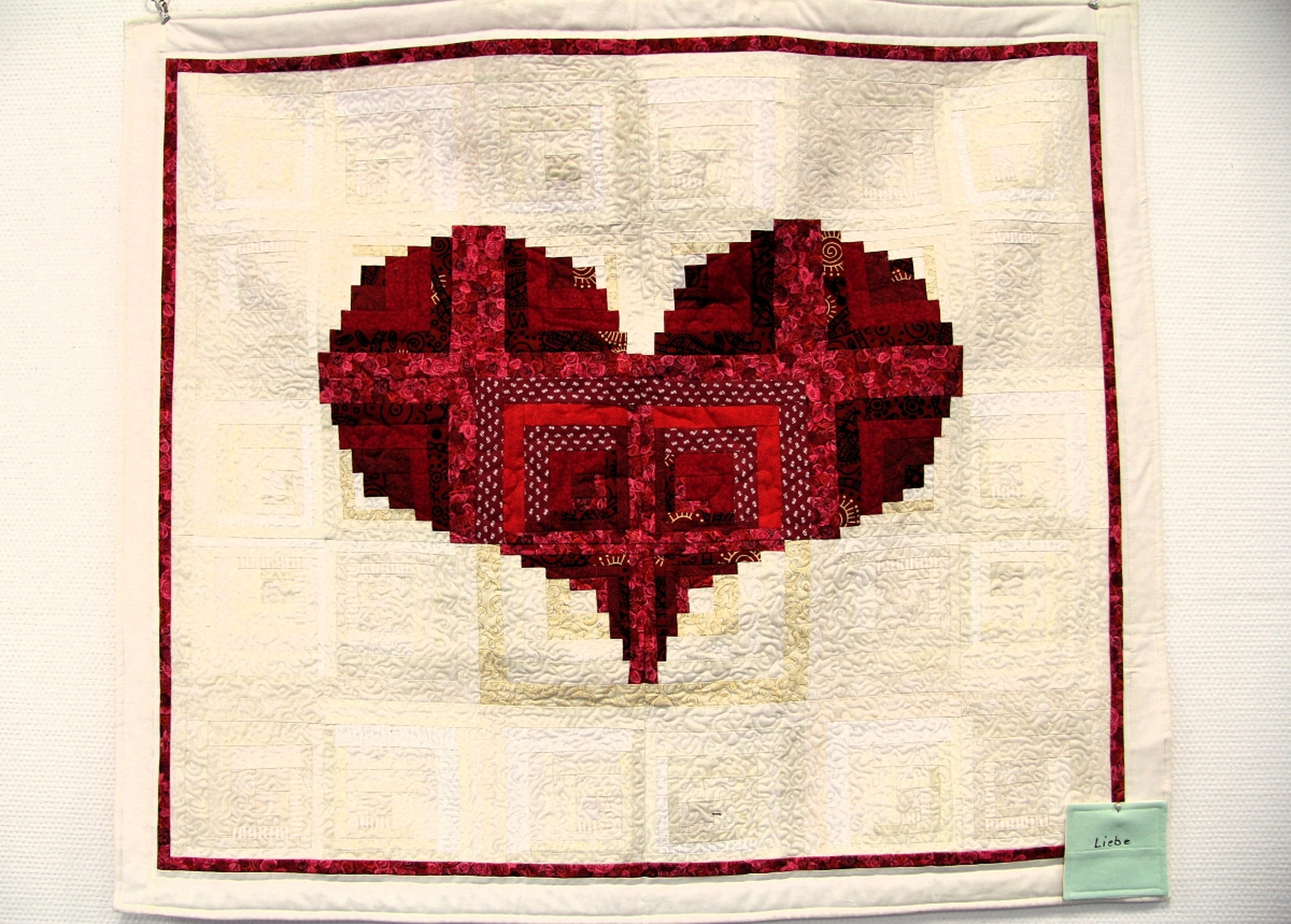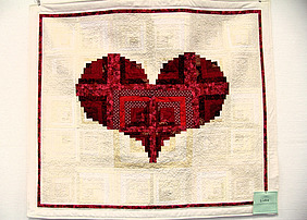 Symbolik mit Herz und Kreuz, kunstvoll verwobene Stoffbahnen in geometrischer Anordnung, Figürliches in freier, filigraner Komposition: So ist das Pilgern von Artquilt zu Artquilt ein optisches Vergnügen. Dass sie seit einem Vierteljahrhundert nicht ohne diese künstlerische Vielfalt leben möchte und kann, gesteht Aßmann mit drei Worten ganz kurz, prägnant und augenzwinkernd: „Ich brauche Stoff!“