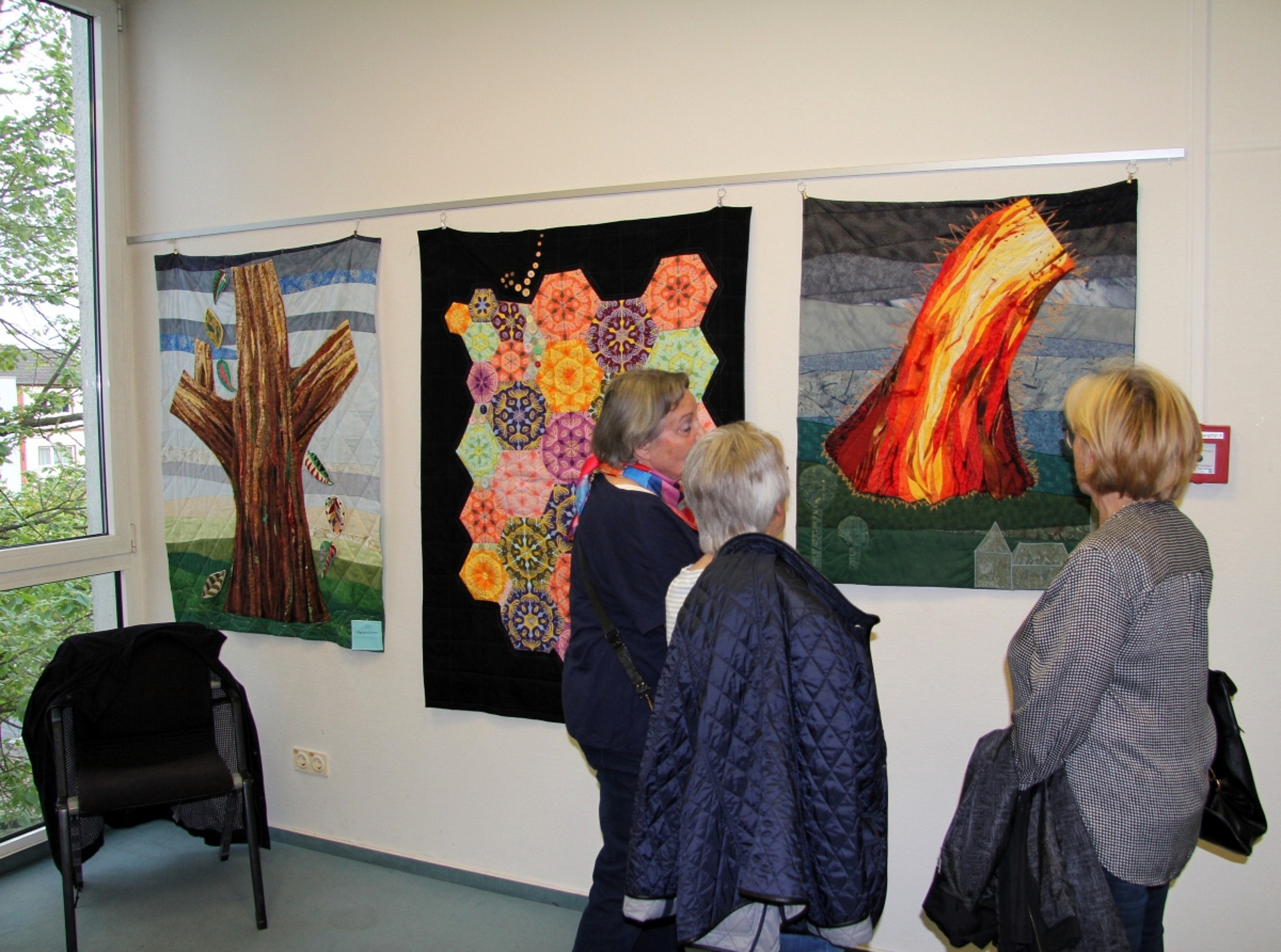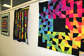 So klang der Tenor von Maria Aßmann, als kürzlich im Obergeschoss der Stadtbücherei im Ober-Röder Ortskern ihre Ausstellung mit farb-intensiven Patchworkwandbildern und -decken eröffnet wurde. Bürgermeister Jörg Rotter sprach einführende Worte und freute sich über zweierlei. Zum einen über die Tatsache, dass die jahrzehntelange Kunstschau-Tradition im Bücherturm an der Trinkbrunnenstraße (rund 230 Präsentationen seit der Eröffnung des Hauses im Jahr 1992) nun aktuell mit einem Stelldichein der feinen, edlen Stoffe fortgeschrieben wird. Textile Gestaltung: Ein Genre, das im Vergleich mit Gemälden und Skulpturen doch eher selten im Fokus steht.
