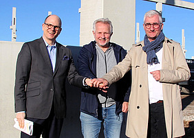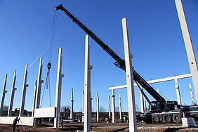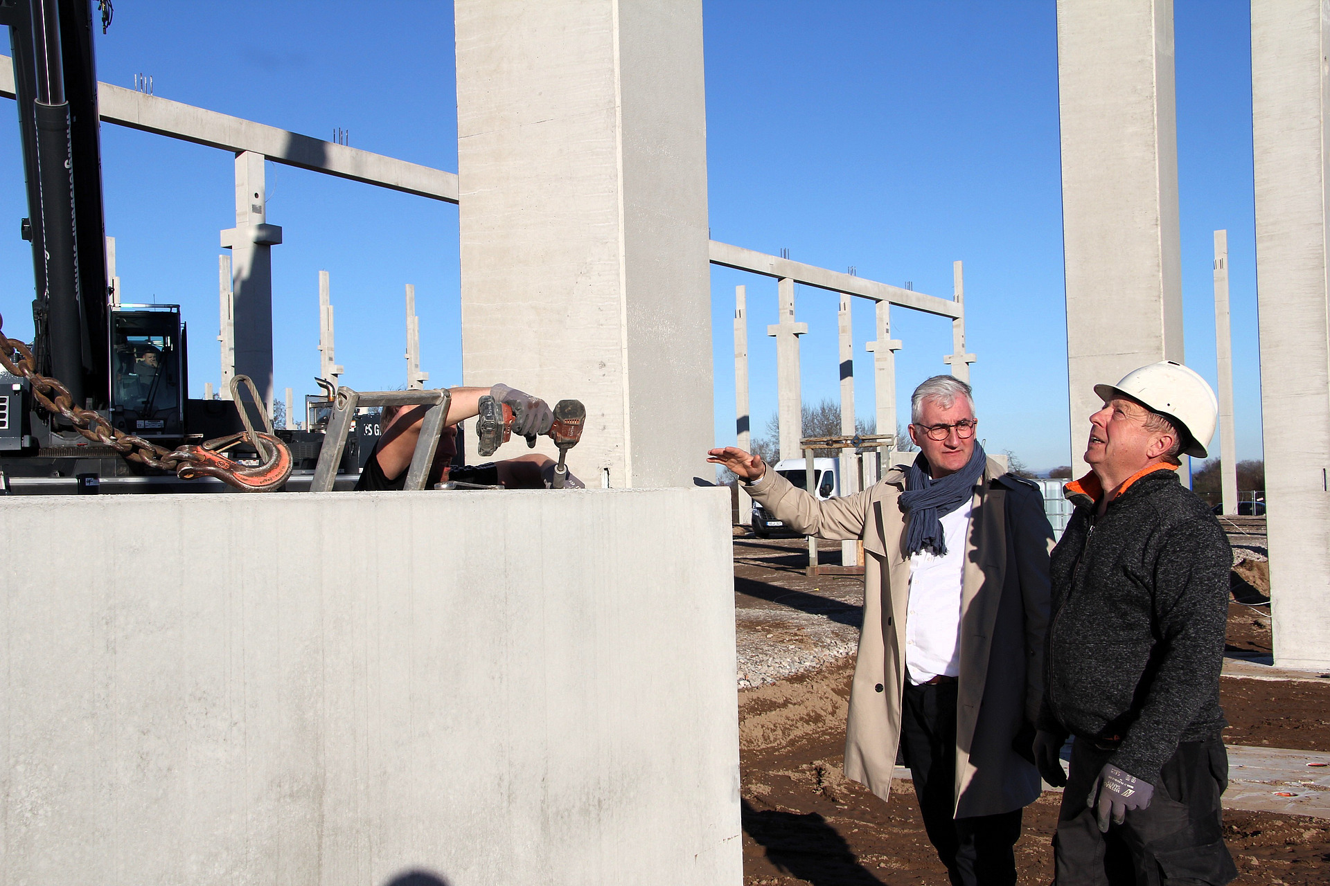 Ergo: Wachstumspotenzial, so der Tenor beim Gespräch zwischen den hoch aufragenden Rohbau-Elementen, ist reichlich vorhanden. Kunz bezifferte das Gesamt-Investitionsvolumen inklusive der Infrastruktur mit Anbindungsstraße, Parkplätzen, sonstiger Zuwegung sowie Beleuchtung und Begrünung auf zirka 50 Millionen Euro.