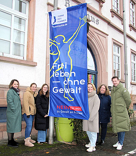 Nach Angaben der EU-Kommission wird jede dritte Frau in Europa mindestens einmal im Leben Opfer von körperlicher oder sexualisierter Gewalt. Solche statistischen Werte könnten die Dimension der Problematik nur andeuten. Sie seien aber gleichwohl eine Mahnung und Verpflichtung, betonte Andrea Schülner, als die blauen Stoffbahnen vor den Verwaltungszentralen präsentiert wurden. Mahnung und Verpflichtung für selbstbestimmtes Leben, das Freiheitsrechte für jeden Menschen als unverhandelbare Grundlage festschreibe: Just dieses Grundprinzip, so die Erste Stadträtin, unterstreiche die Aufforderung „Flagge zeigen“ von „Terre des Femmes“.