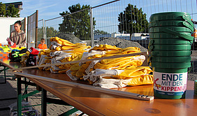 Diese Bilanz zogen die Verantwortlichen der Kommunalen Betriebe (KBR), nachdem sie die Putzoffensive – eingebettet in die internationale Kampagne „World Cleanup Day“ – einmal mehr in der bewährten Aufmachung organisiert hatten. Beim kollektiven „Merci“ in Form von Bewirtung und Kindervergnügen à la Hüpfburg wurde auf dem Betriebshof an der Albert-Einstein-Straße in geselliger Runde das Fazit formuliert – und das klang in diesem Jahr bei besten äußeren Rahmenbedingungen mit strahlender Spätsommersonne ein bisschen widersprüchlich.