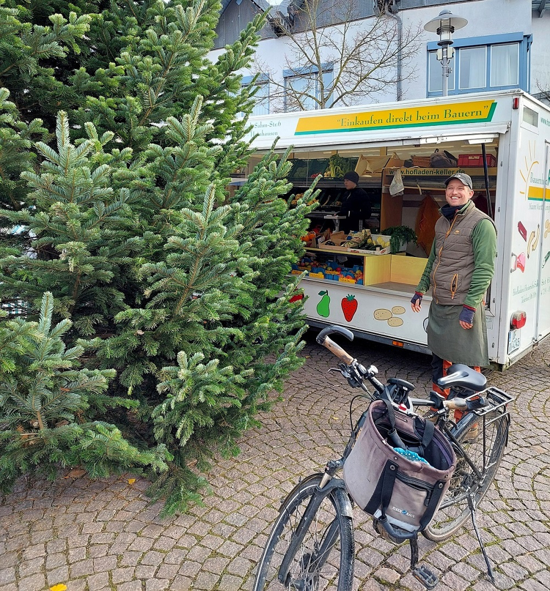 Da hatten Landwirt Tobias Keller aus Rodgau und seine Beschickerkollegen beim Bauernmarkt in Ober-Roden gut lachen: Der stattliche Baum zur Einstimmung auf Weihnachten stand taufrisch in seiner Verankerung, die Kundschaft begann gerade per Rad, Auto oder zu Fuß Richtung Marktplatz zu pilgern… Und so konnte die Aktion „Winter Warm-up“, zur der die Händler gemeinsam mit der städtischen Wirtschaftsförderung eingeladen hatten, ganz gemütlich auf Touren kommen.