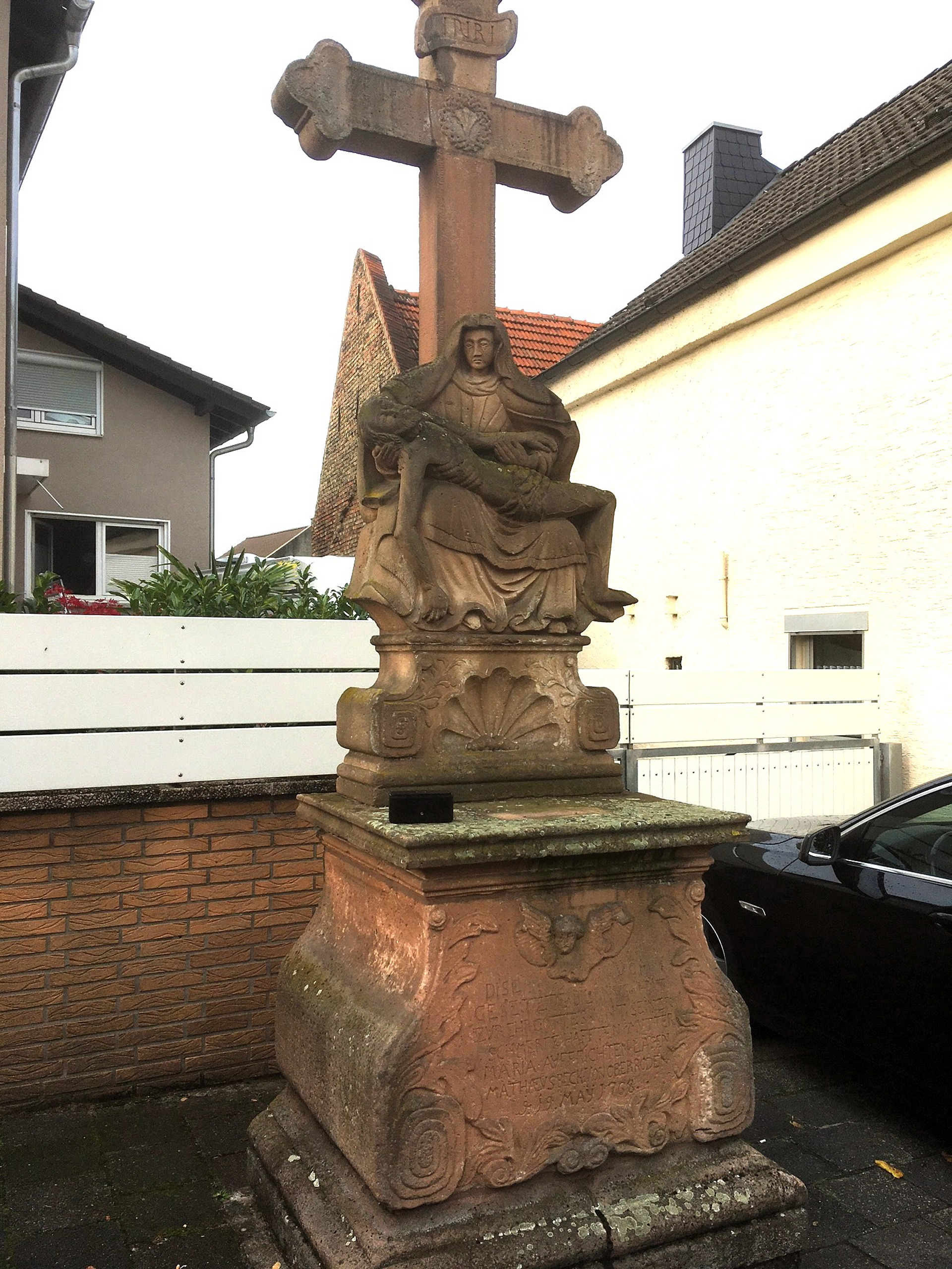 Eine Infotafel klärt über die Entstehungsgeschichte, die Marienverehrung und die damit einhergehende Wallfahrtstradition auf. Zu lesen ist auf der Inschrift, dass die Skulptur der „Schmerzhaften Mutter Gottes“ im Jahr 1768 von einem unbekannten Steinmetz für die Ober-Röder Katholiken aus Sandstein erschaffen wurde. Orientiert an just diesem Vorbild entstand zwei Jahren später die Pietà in Urberach.