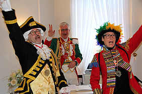 Fastnachter mit Herzblut, Leidenschaft und einem großen närrischen Erfahrungsschatz: Das ist Bürgermeister Jörg Rotter, doch ein derart originelles und stimmiges i-Tüpfelchen kurz vor dem Ausklang der Kampagne… Das war selbst für den 51-Jährigen Neuland. Premiere in Rödermark: Erstmals durfte Rotter am Rosenmontag in seiner Funktion als Standesbeamter die Tür zum Trausaal öffnen.