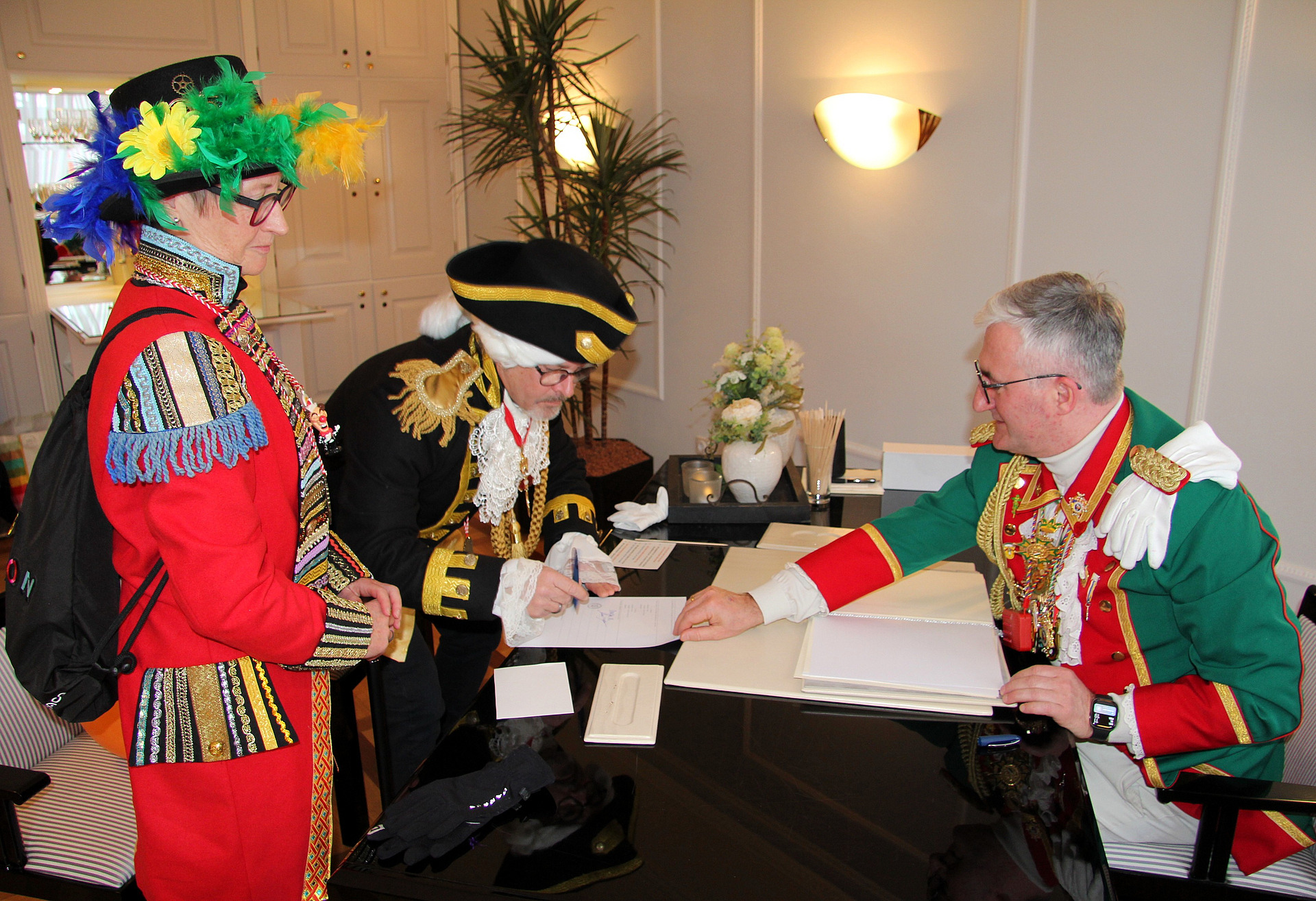Rotter hatte sichtlich Freude an den besonderen Umständen. Er besiegelte den formellen Akt der Eheschließung stilvoll in der Uniform der Prinzlichen Hofgarde der TG Ober-Roden und dachte wohl insgeheim-augenzwinkernd: „Daran könnt‘ ich mich gewöhnen…“