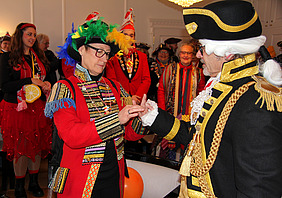 Pünktlich um 11.11 Uhr gaben sich Klaus Auth und Claudia Klein im Rathaus an der Dieburger Straße das Ja-Wort. Der ehemalige Sitzungspräsident der Turnerschaft Ober-Roden und seine ebenfalls jeck infizierte Ehefrau absolvierten die Zeremonie im Beisein einer großen Schar von Verwandten, Freunden und Gleichgesinnten.
