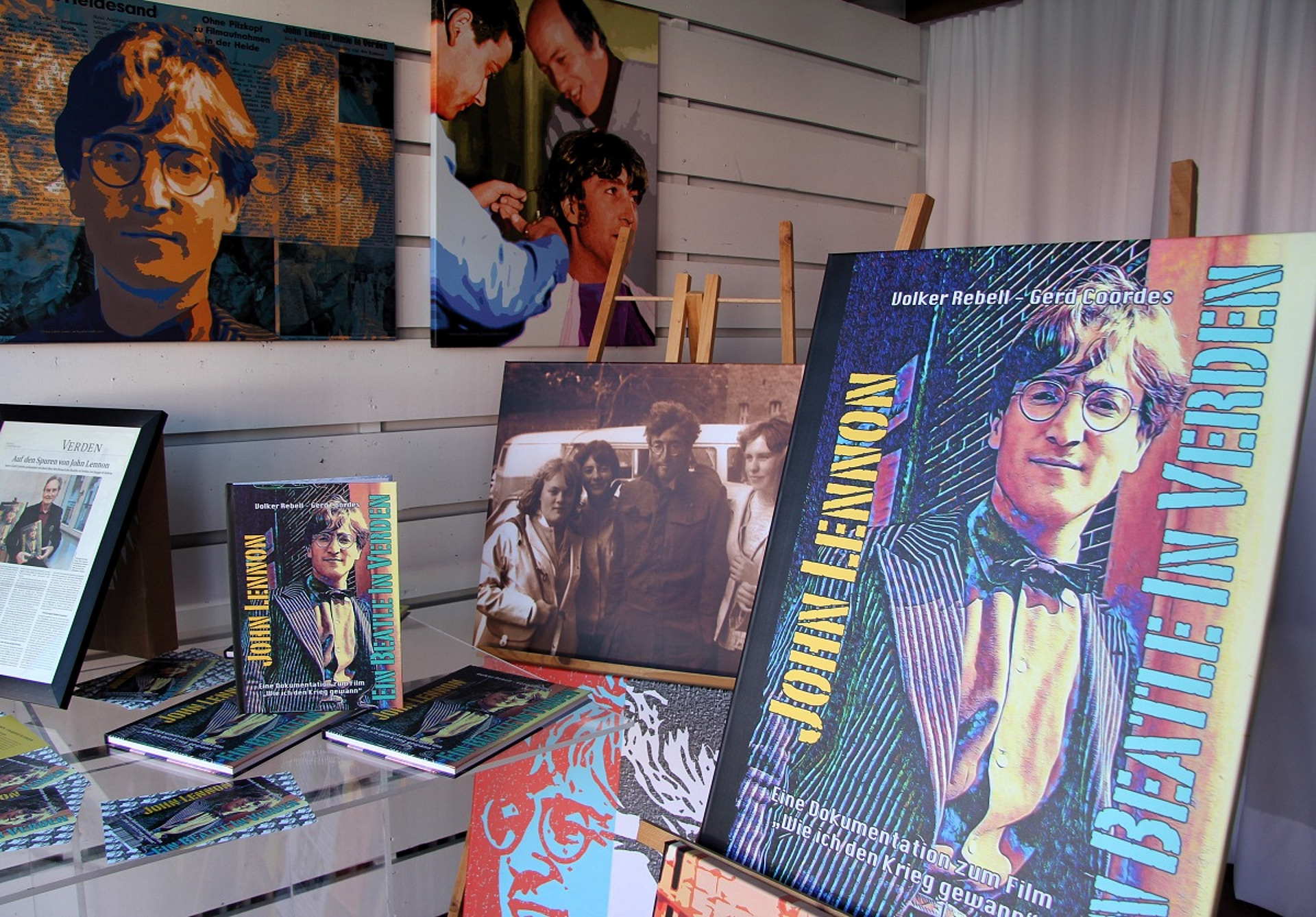Neugierig gemacht werden die Passanten auf das besagte Buch, das Coordes gemeinsam mit Musikradio-Altmeister Volker Rebell erstellt hat. „John Lennon – Ein Beatle in Verden“: Unter diesem Titel wird berichtet, wie der Engländer 1966 nach Deutschland kam, um dort als Schauspieler im Film „Wie ich den Krieg gewann“ mitzuwirken. In Coordes einstiger Heimat im Norden, im niedersächsischen Verden an der Aller, wurde damals am Set gearbeitet.