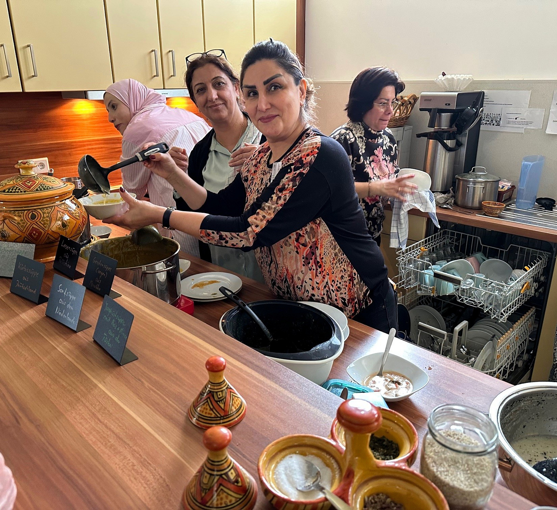 Schöne Idee, leckere Umsetzung: Mit einer Rödermärker Premiere, dem „1. Internationalen Suppenfestival“, sind in der Stadt zwischen Bulau und Breidert kürzlich die diesjährigen Interkulturellen Wochen zu Ende gegangen. Im SchillerHaus in Urberach konnten neun schmackhafte Kreationen nach Herzenslust probiert und bewertet werden. Aus den Niederlanden, der Türkei, dem Iran sowie aus Afghanistan, Marokko, Syrien und Palästina stammten die Rezepte für den Mittagsimbiss in großer Bandbreite, der von Senf über Minze bis hin zu Bohnen und allerlei Kräutern unzählige Zutaten in den Töpfen zusammenführte. Umrühren, Kelle rein… Und der kulinarische Streifzug konnte beginnen. Quartiersmanager Stephan Reich hatte die Anregung für den kleinen Genießer-Wettbewerb geliefert.