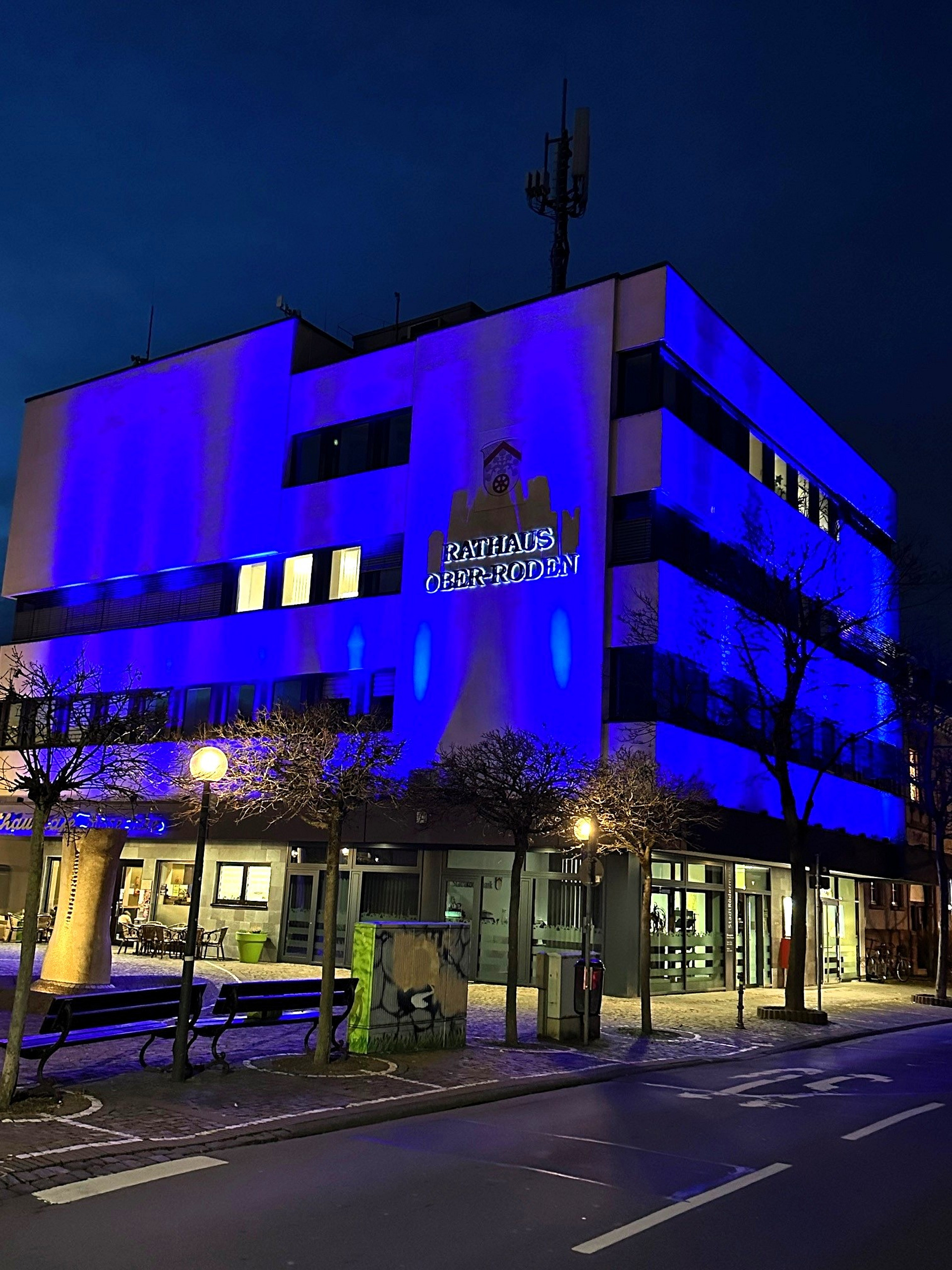 Ein Farbakzent der besonderen Art ist in dieser Woche am Donnerstagabend am Rathaus Ober-Roden gesetzt worden. Die Fassade der Verwaltungszentrale erstrahlte in sattem Blau, animierte Passanten zum Hinschauen und Nachdenken. Blau? Und warum dieses Signal ausgerechnet am 20. November?