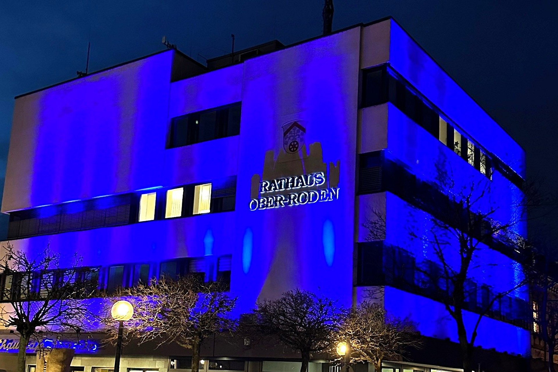Ein Farbakzent der besonderen Art ist in dieser Woche am Donnerstagabend am Rathaus Ober-Roden gesetzt worden. Die Fassade der Verwaltungszentrale erstrahlte in sattem Blau, animierte Passanten zum Hinschauen und Nachdenken. Blau? Und warum dieses Signal ausgerechnet am 20. November?