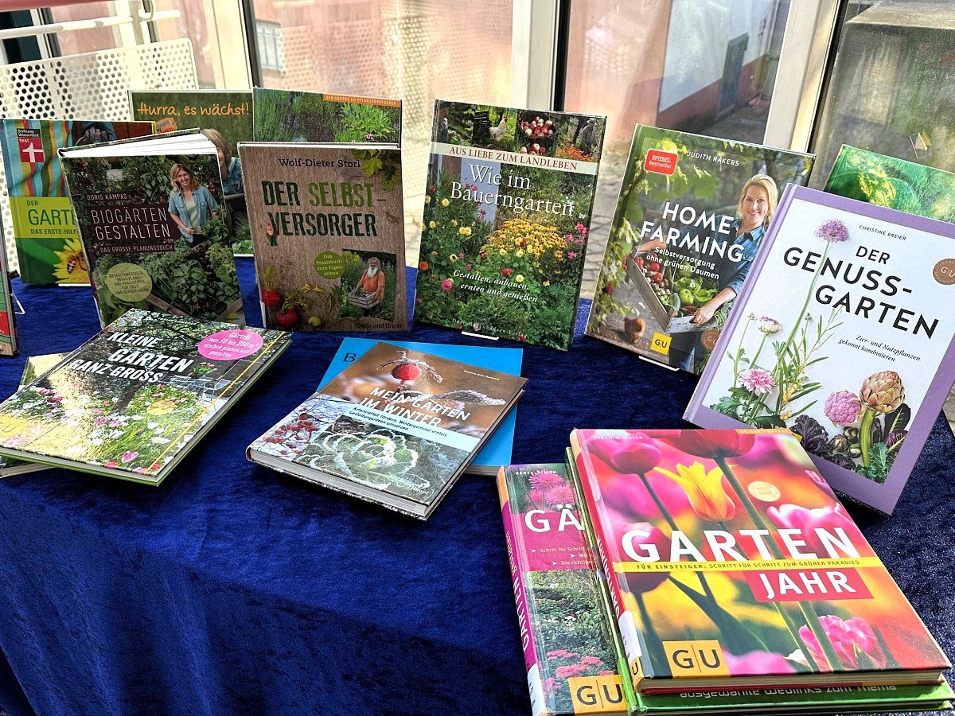 Mit dem Verein zur Erhaltung der Nutzpflanzenvielfalt kooperiert die Bibliothek bei der Ausgabe von Saatgut-Tütchen, die zum Hantieren mit Hacke, Gießkanne und Schere animieren. Dazu gibt es einen schmucken Sondertisch mit allerlei Gartenlektüre: farbenfroh, informativ, anregend. Fazit: Die Stadtbücherei hat zum Sonderthema des Jahres 2025 viel zu bieten. Bis in den Herbst hinein wird es immer wieder neue Impulse und Anstöße geben.