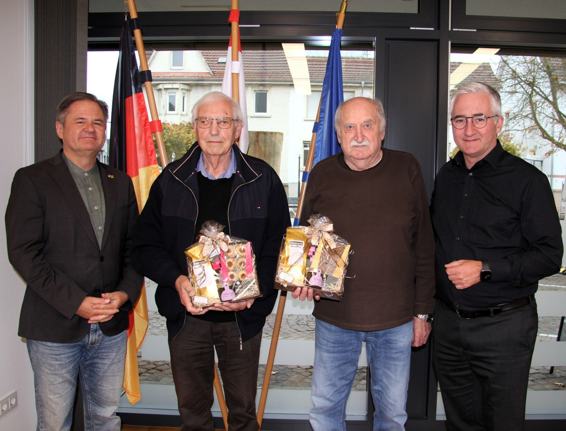 „Wir kümmern uns sehr gerne intensiver um diese Aufgabe und danken den beiden rührigen Helfern für den großartigen Einsatz über einen so langen Zeitraum hinweg“: Das betonte Bürgermeister Jörg Rotter kürzlich, als er Feith und Seitz im Rathaus Ober-Roden empfing, um Geschenkpäckchen mit süßen Leckereien als Zeichen der Anerkennung und Wertschätzung zu überreichen. Mit von der Partie war auch Thomas Mörsdorf, der für Erinnerungskultur zuständige Leiter des städtischen Fachbereichs für Kultur und Sport.