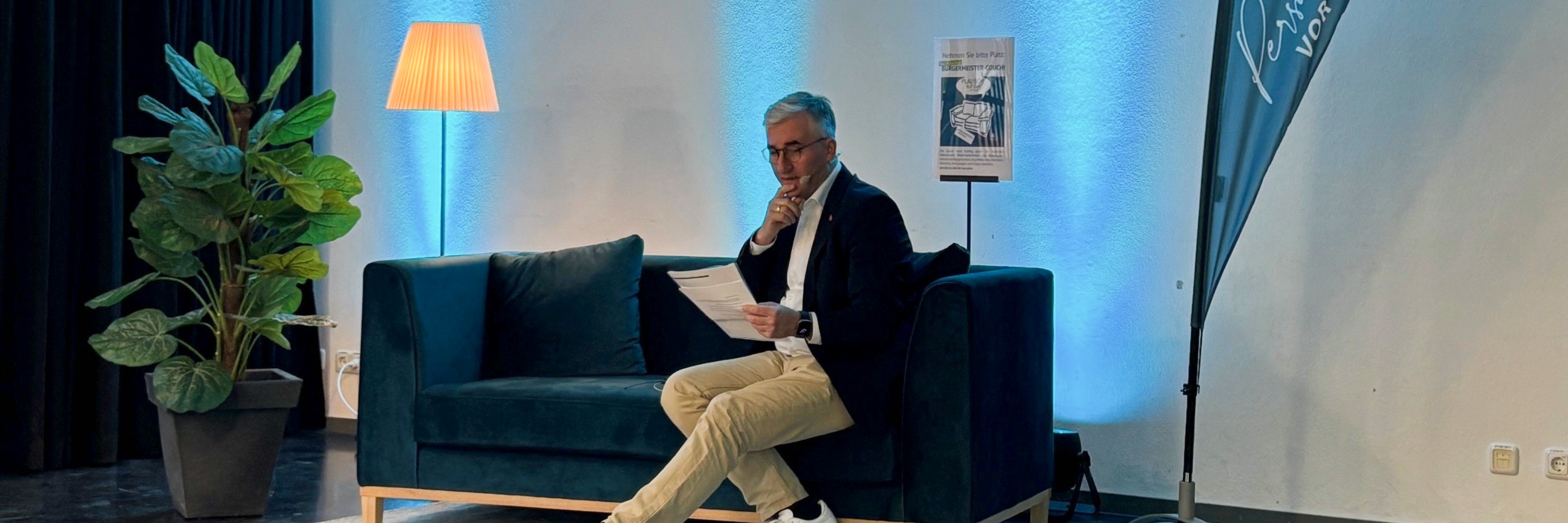 Möchten Sie bei der ersten Veranstaltung am 22. April 2026 im Bürgertreff Waldacker auf dem Sofa Platz nehmen? Dann melden Sie sich an und übermitteln Sie Ihre Frage(n). Hier geht es zur Anmeldung