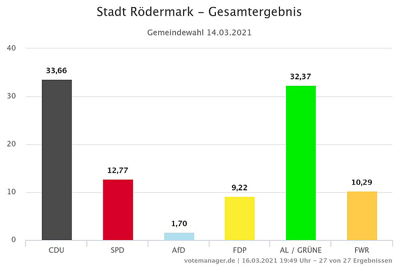 Durch die Bürgerinnen und Bürger von Rödermark werden im Rahmen der Kommunalwahl auf fünf Jahre Vertreter von Parteien als Stadtverordnete in die Stadtverordnetenversammlung gewählt.